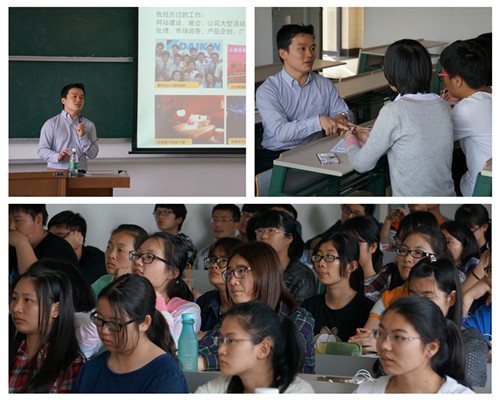 薛晓斌作为大金中国投资有限公司品牌推进部部长,现主要负责公司的大型活动策划、组织、运营等工作。此次主要结合本人在公司中的成长历程,以及工作多年累积的经验和感悟进行讲解。首先,薛学长以他自身的三个案例“搭建网络平台”、“公司大型活动的组织运营”及“创新实践”给我们展示了他在大金公司的成长之路。随后,他以公司招聘人才时对应聘者素质的要求为例,提醒我们要注重培养沟通能力、团队合作能力、倾听表达能力等。最后,他分享了自己工作多年以来作为职员和管理者不同身份的感悟,启发我们要对今后就业形势保持乐观的心态,并从现在开始培养自己的学习主动性、人际交往能力等综合能力,努力成为当今社会需要的复合型人才。