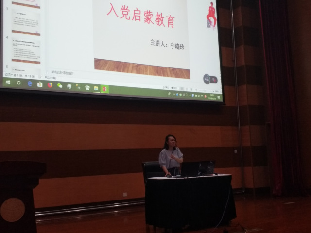 首先由宁晓玲老师以“什么人能申请入党”为引子开展教育大会,向同学们重点说明了大学生入党应该树立什么样的入党动机,并就如何写入党申请书和思想汇报展开。